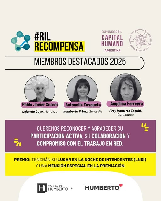Desde la Comuna, queremos destacar especialmente el reconocimiento a Antonela Cosqueta, Jefa de Recursos Humanos de la Comuna local, por su participación activa, compromiso y aporte constante a lo largo del año.