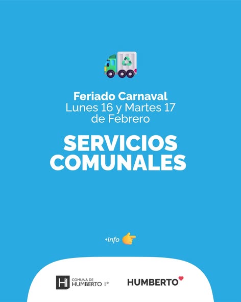Con motivo del Feriado de Carnaval (lunes 16 y martes 17 de febrero), los servicios comunales funcionarán de la siguiente manera: