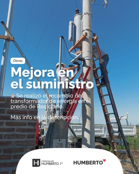 En el predio de Reciclado, se realizó el recambio del transformador de energía a cargo de la Cooperativa de Agua Potable y Servicios de Humberto.