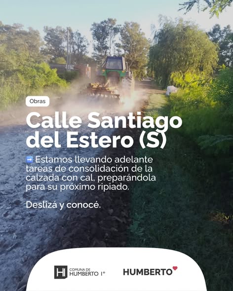 En calle Santiago del Estero Sur avanzamos con la consolidación de la calzada mediante la aplicación de cal, paso previo al ripiado.