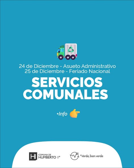 Con motivo del Asueto Administrativo del miércoles 24 de diciembre y el Feriado Nacional del jueves 25 de diciembre, informamos cómo funcionarán los servicios comunales: